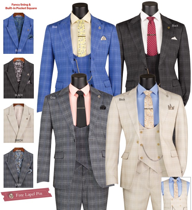 Fancy lining & Built-in Pocket Square Slim Fit Suits