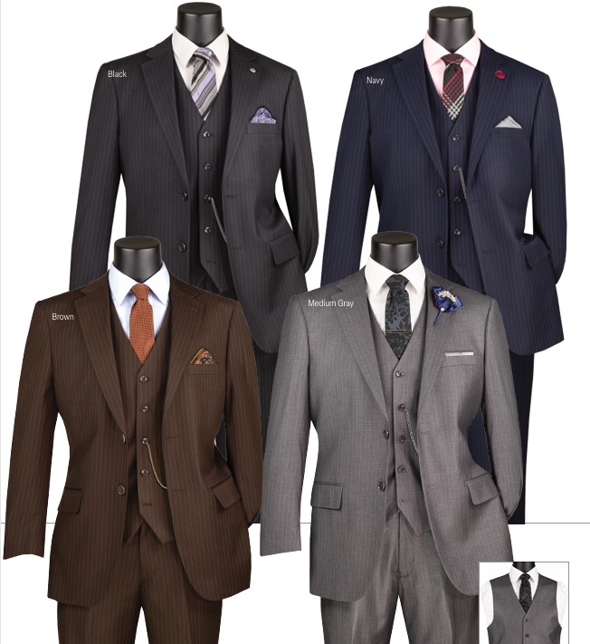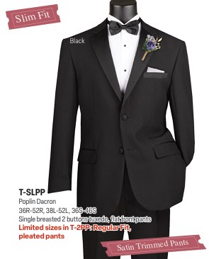 Vinci 4TV-1 / 4TV-2, 4 PCS Tuxedo Collection with vest and bowtie, Luxurious Wool Feel, Single breasted 2 buttons, flat front pants. Matching Bow Tie Satin Vest, *4TV-2 come with adjustable waistbands and sateen trim Colors: Black, Gray, Ivory, Red, White Sizes: 36R-62R, 40L-62L, 36S-46S